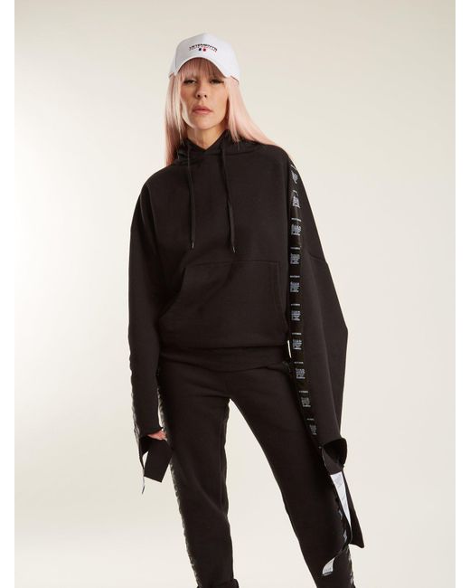 Women's Black Hooded Tape Trimmed Sweatshirt