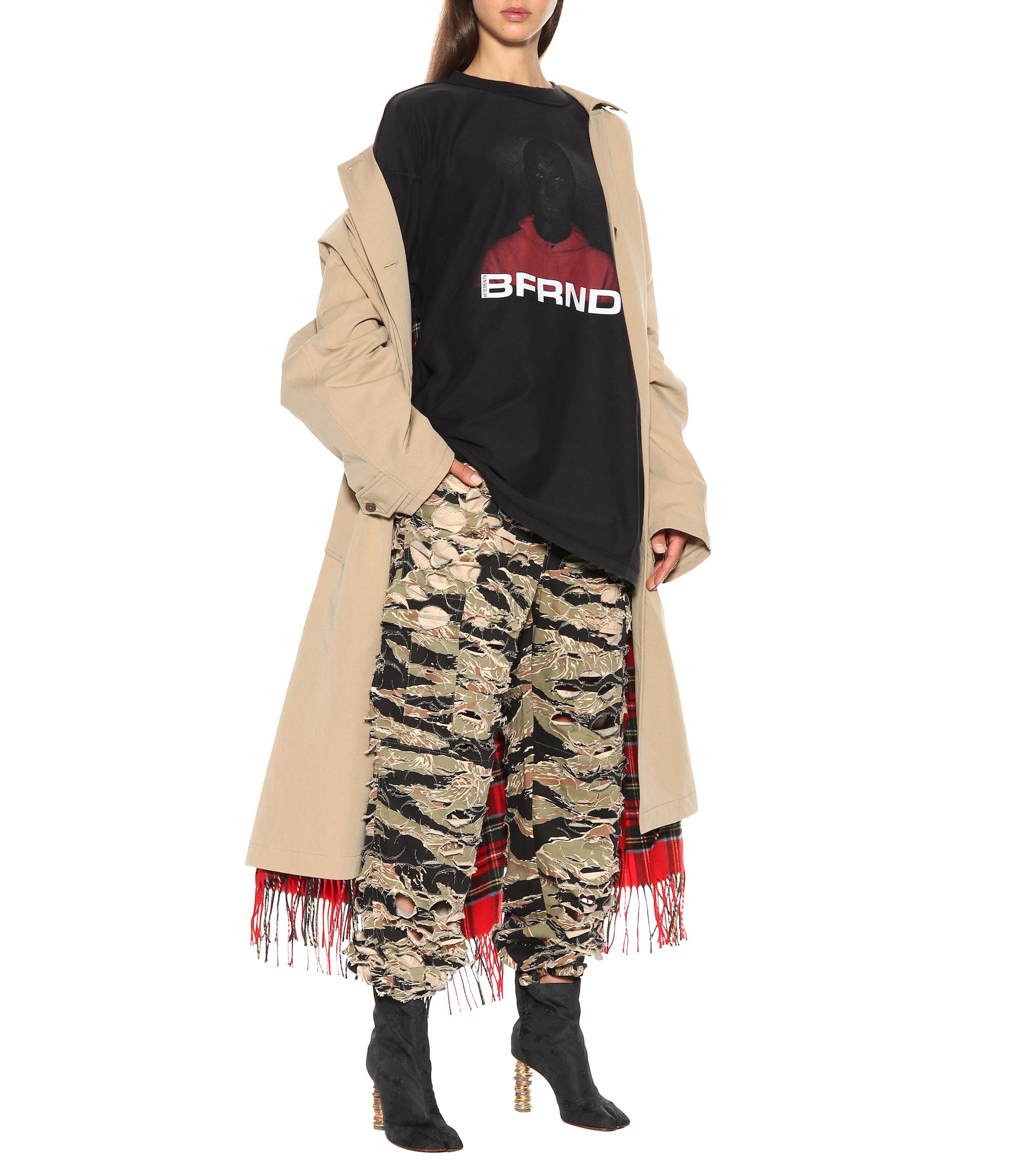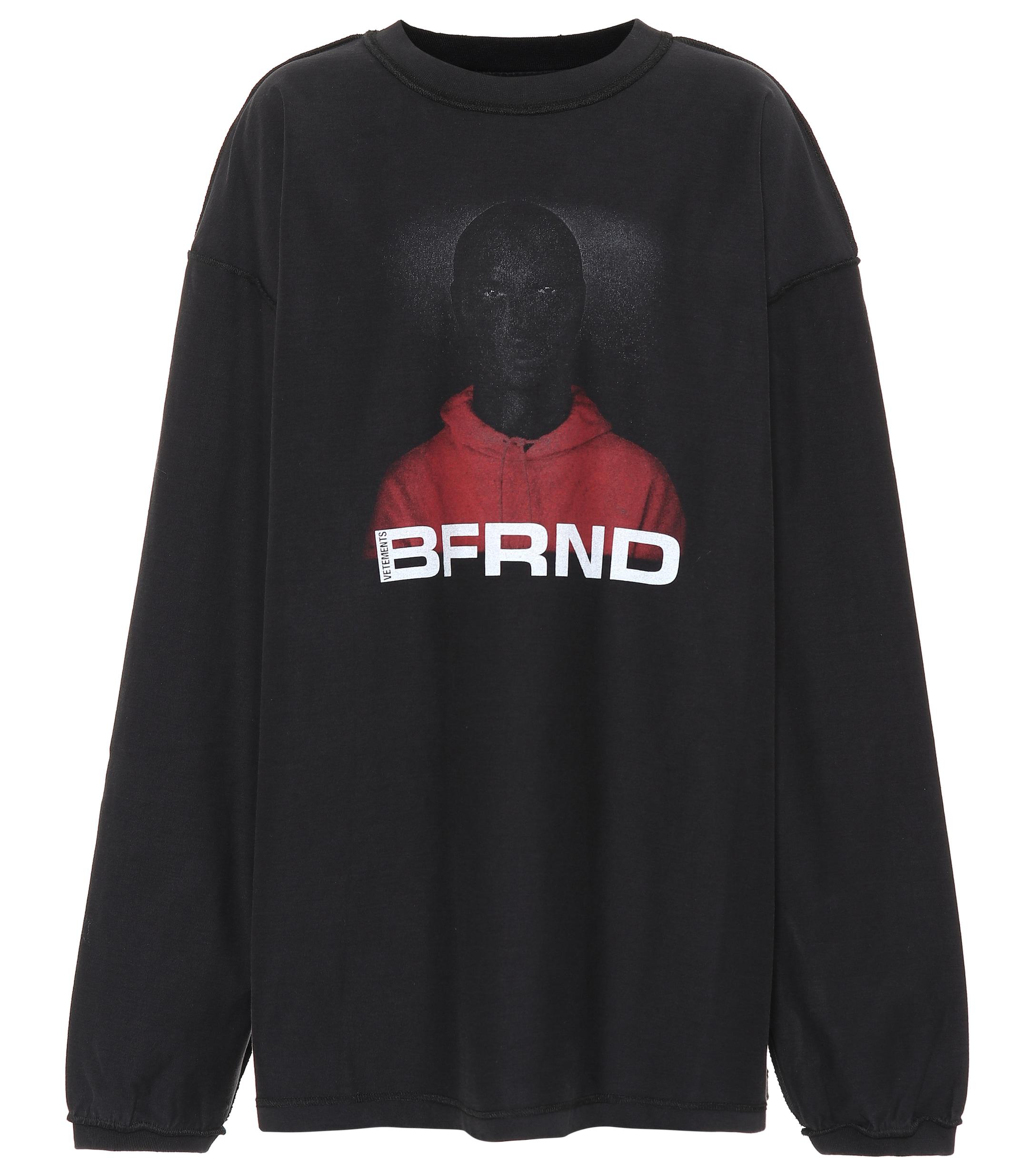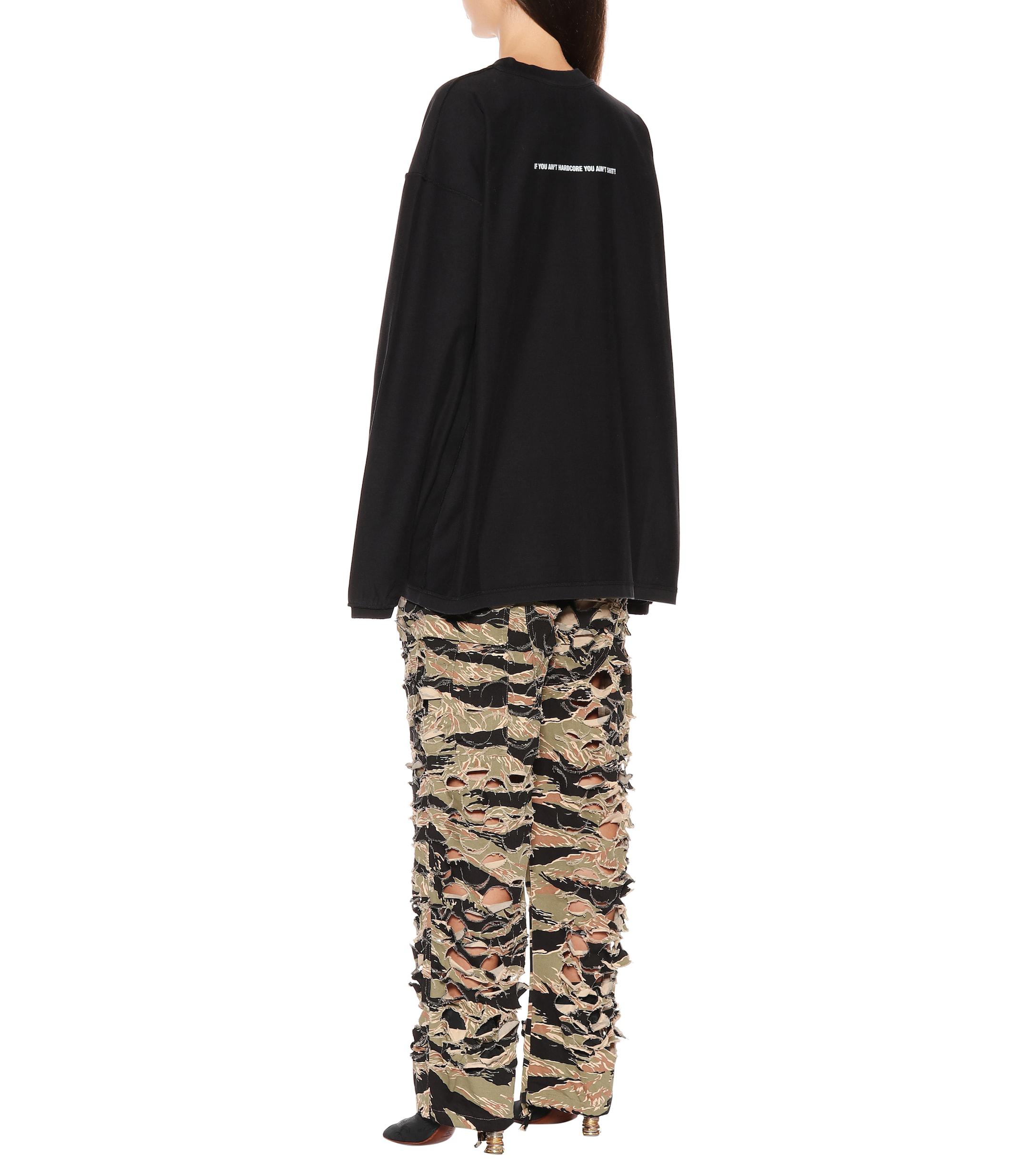 This oversized cotton top from VETEMENTS represents the brand's affinity for tongue-in-cheek yet gritty designs with its ironic prints on the front and back and inside-out style. Colour: black