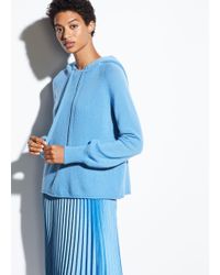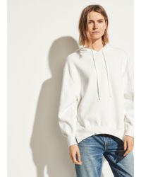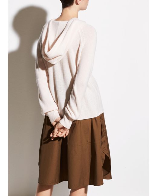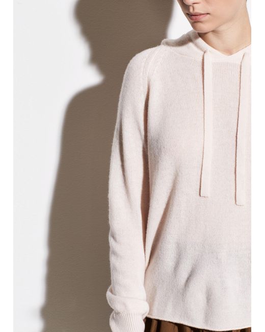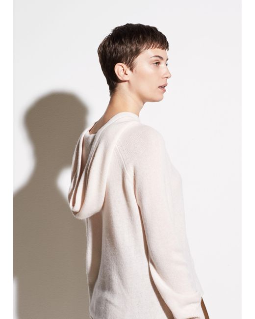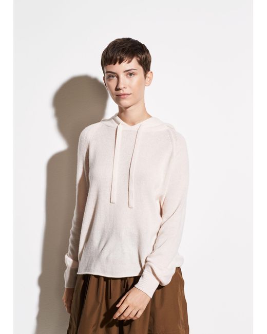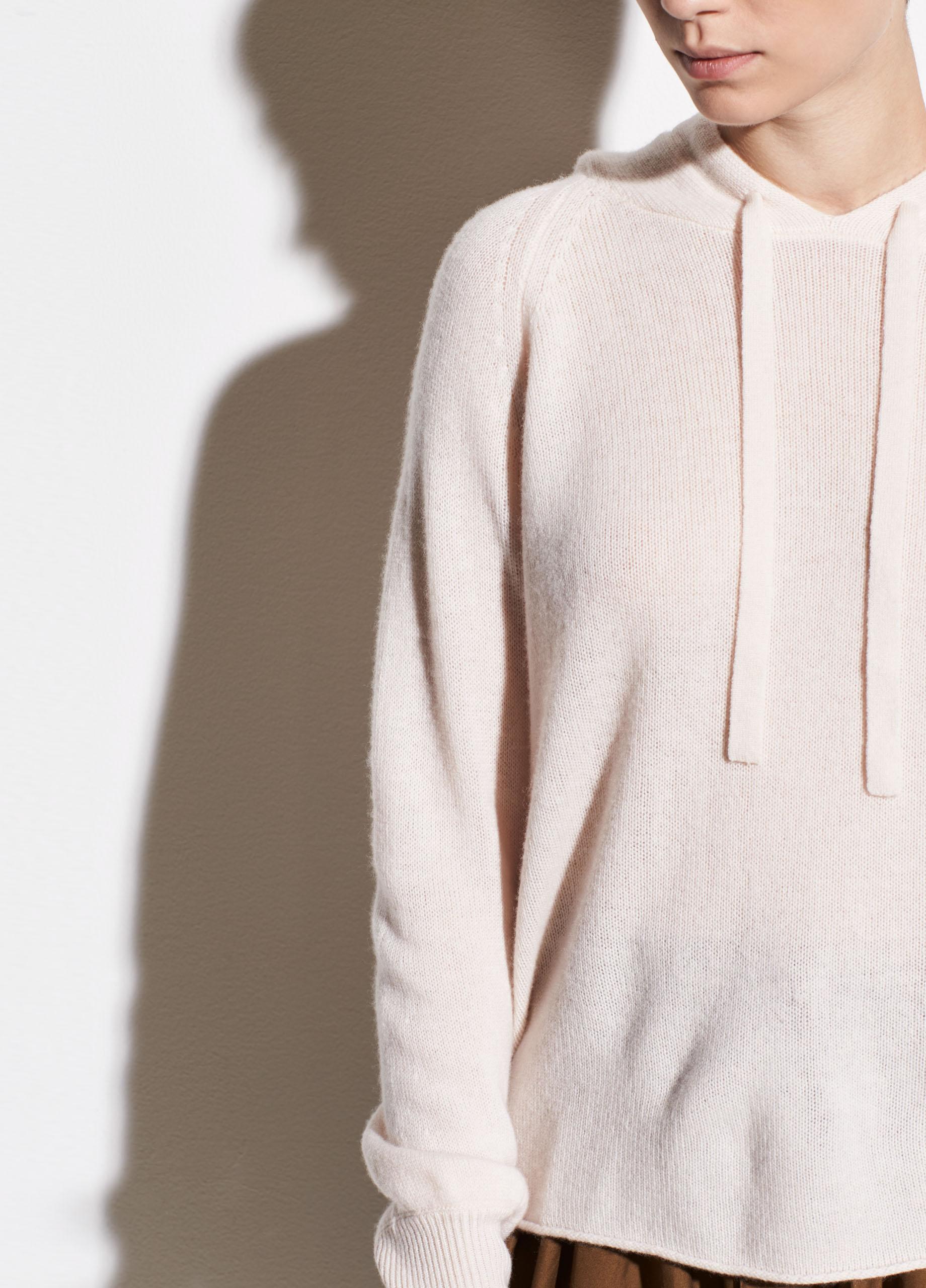Vince raglan hoodie with rolled hem. Hoodie neckline with drawstring. Long raglan sleeves; ribbed cuffs. Cashmere exclusive of trim.