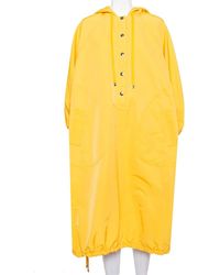 Yellow Cotton Half Button Oversized Hooded Parka Coat