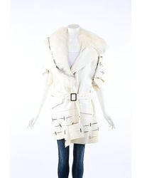 Gianni Vintage Beige Cutout Leather Contrast Trim Belted Coat - Natural