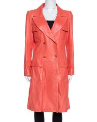 Beige Perforated Python Embossed Leather Belted Coat - Natural