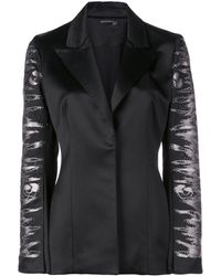 Women's Sequined Evening Knit Satin Accent Blazer - White - Size 6